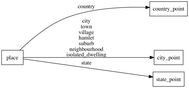 • class: Distinguish between country, state and other city classes like city, town, village, hamlet, suburb, neighbourhood or isolated_dwelling. Use this to separately style the different places according to their importance (usually country and state different than cities).